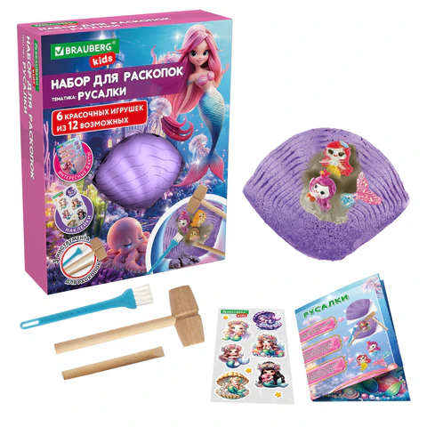 Набор для раскопок "Русалки" 17x21,5 см, инструменты, наклейки, BRAUBERG KIDS, 665927