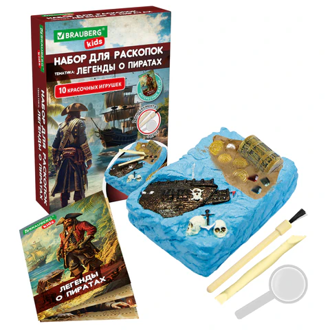 Набор для раскопок "Легенды о пиратах" 16х23 см, инструменты, BRAUBERG KIDS, 665938