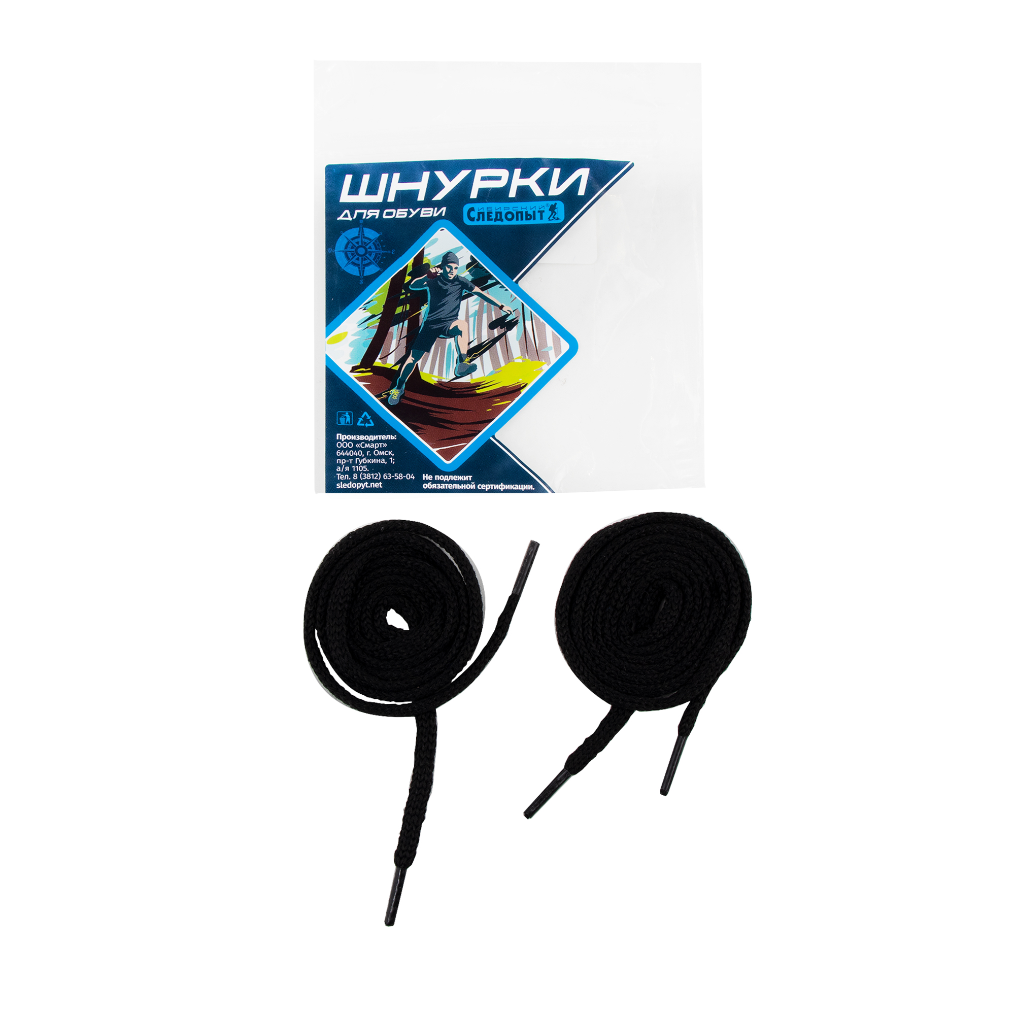 Шнурки для обуви "СЛЕДОПЫТ" вязаные, цв. черный, диам. 4 мм., дл. 120 см/100/