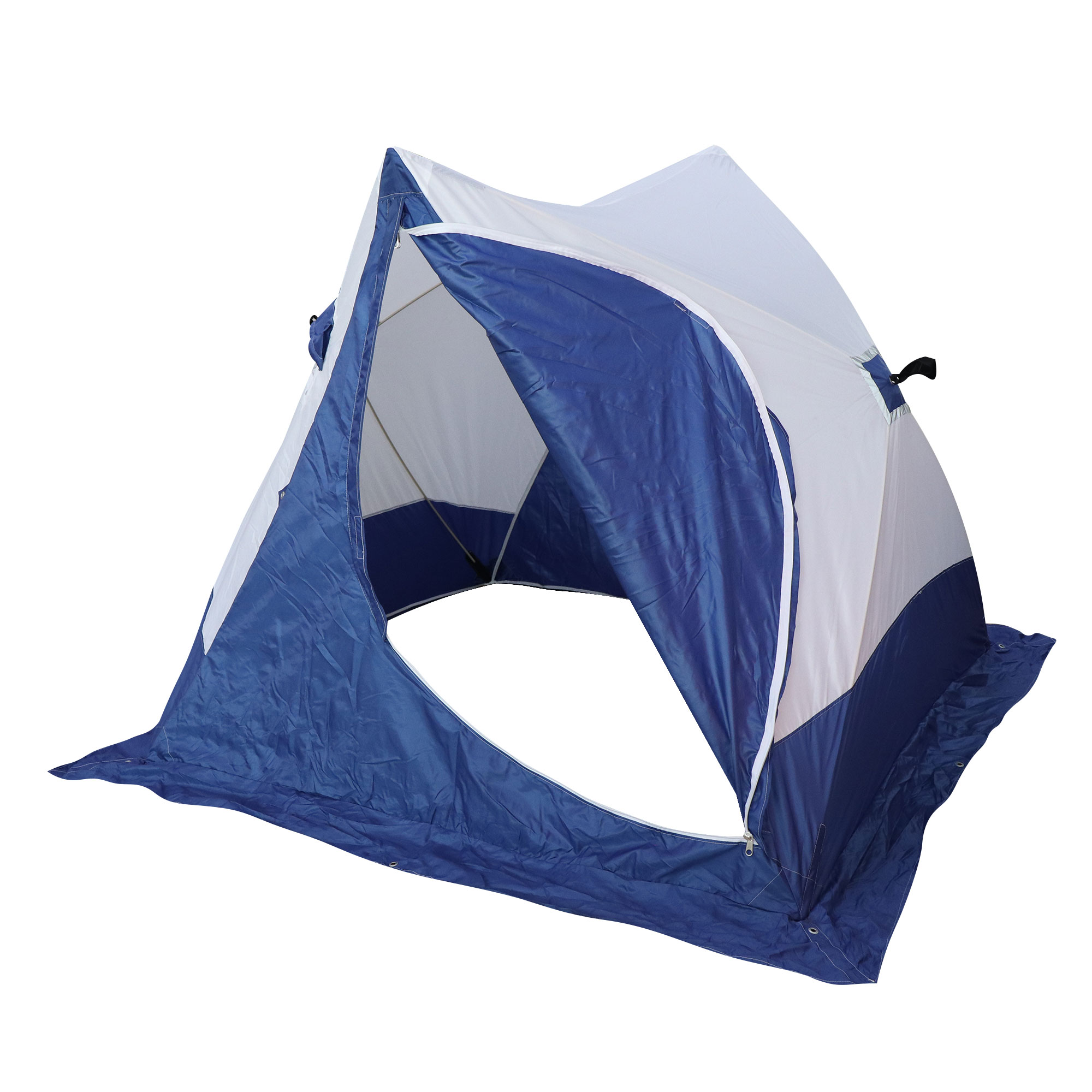 Палатка зимняя куб СЛЕДОПЫТ, 1,9х1,9, h-2,05 м, S по полу 3,6 кв.м, 3 слоя, цв. синий/белый