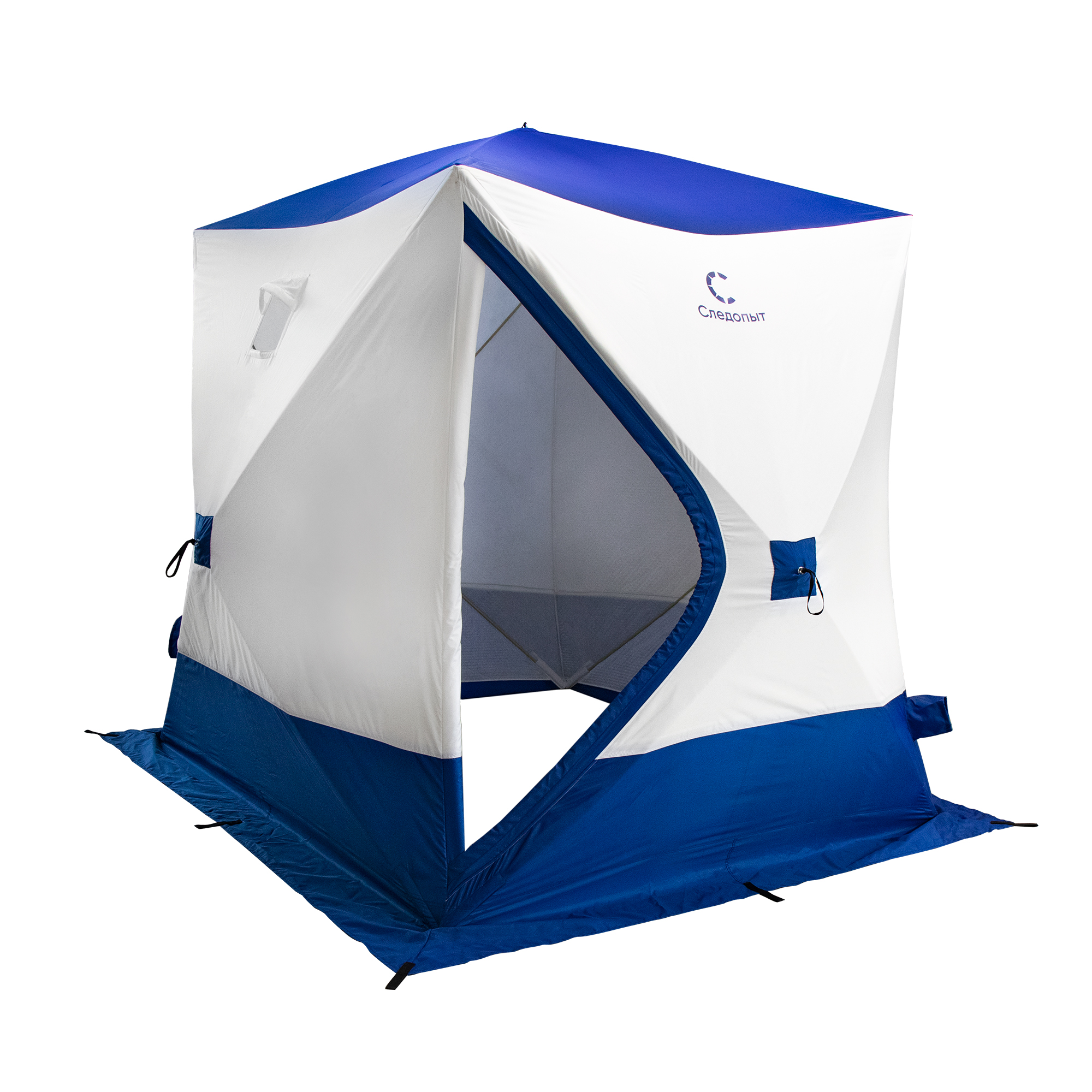 Палатка зимняя куб СЛЕДОПЫТ, 2,15х2,15 м, S по полу 4,6 кв.м, 3 слоя, цв. синий/белый