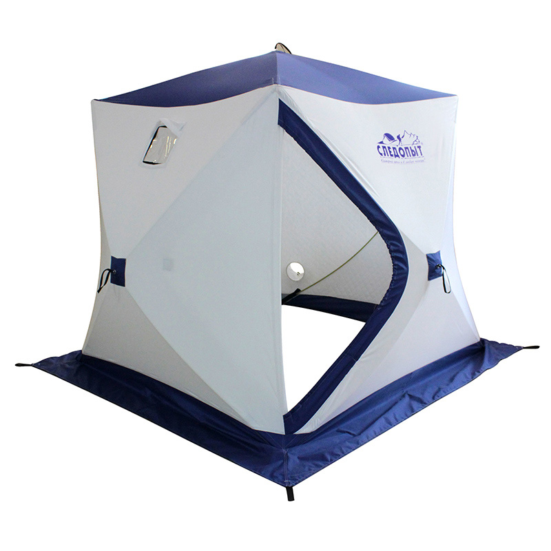 Палатка зимняя куб СЛЕДОПЫТ 1,8 х1,8 м, Oxford 210D PU 1000, 3-местная, цв. бело-синий (Уценка)