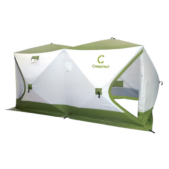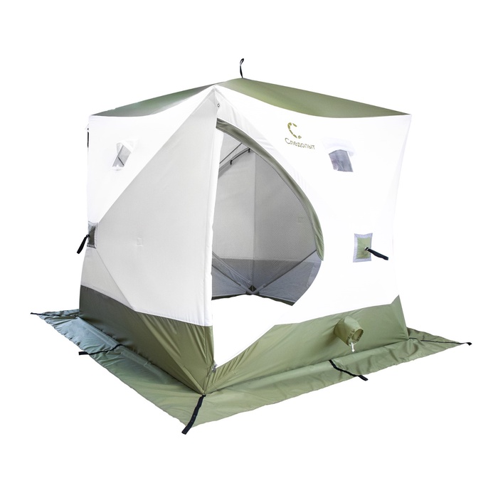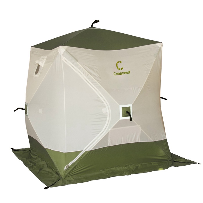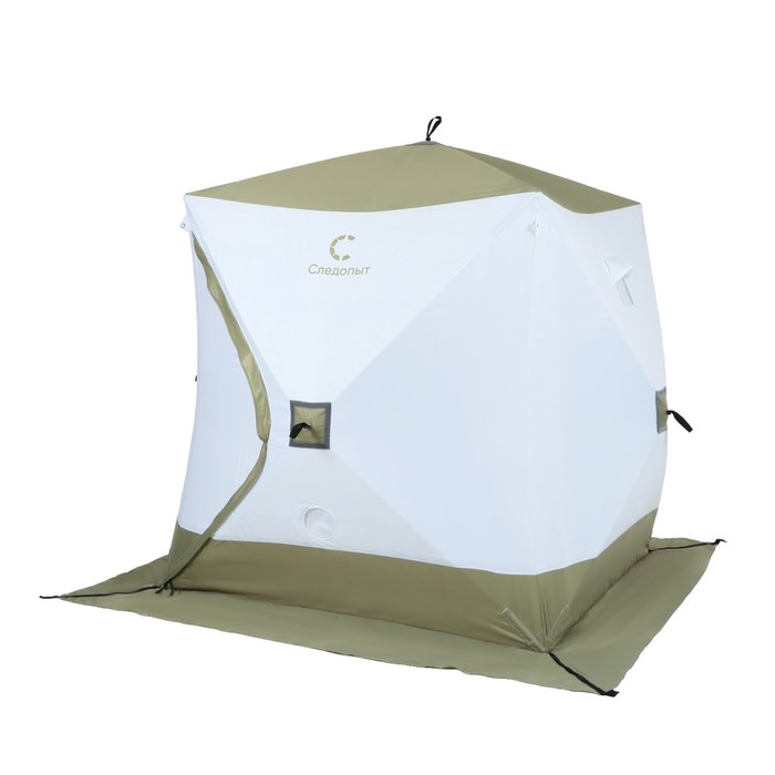 Палатка зимняя куб "СЛЕДОПЫТ" Premium, 1.8 х 1.8 м, 3-х местная, 3 слоя, цвет белый/олива