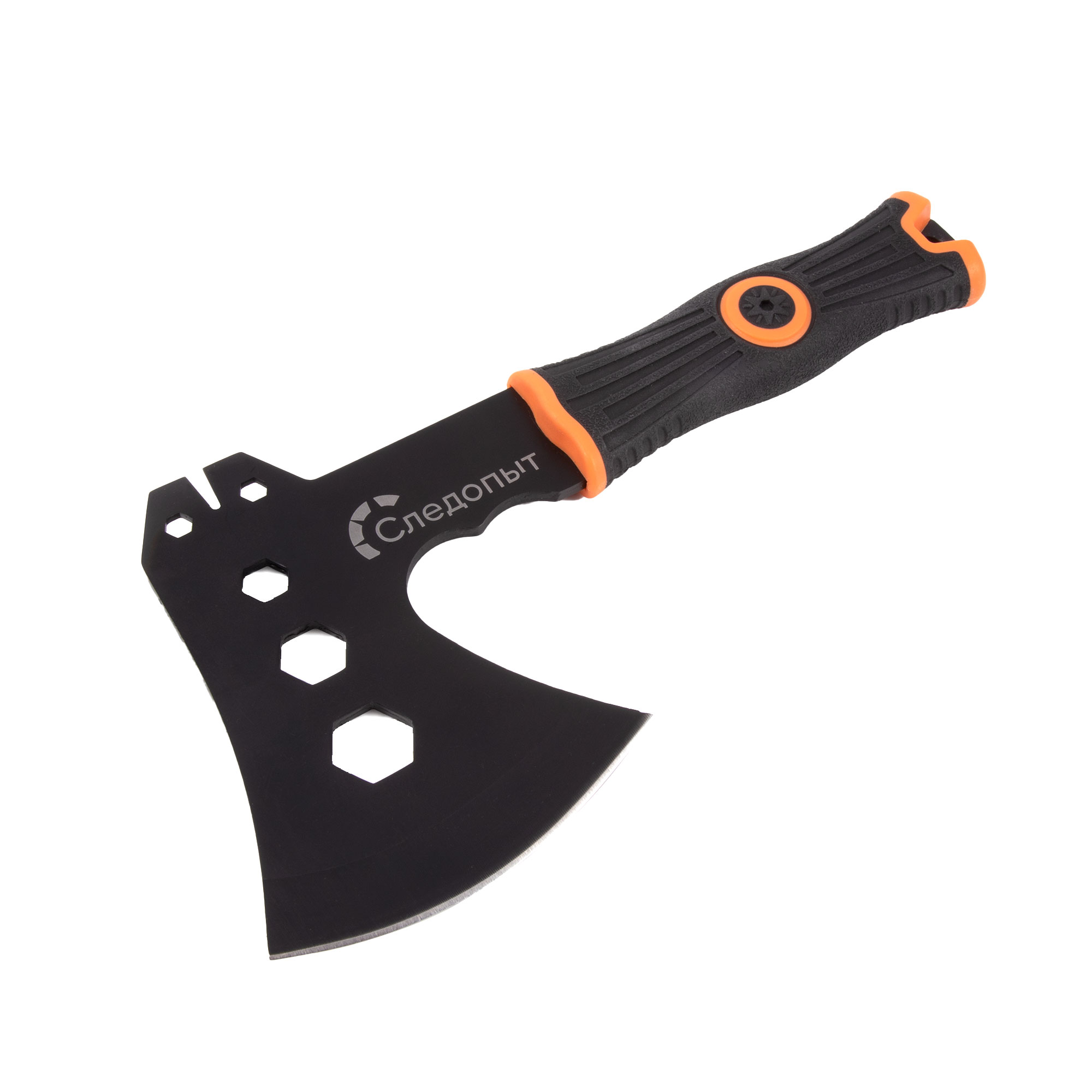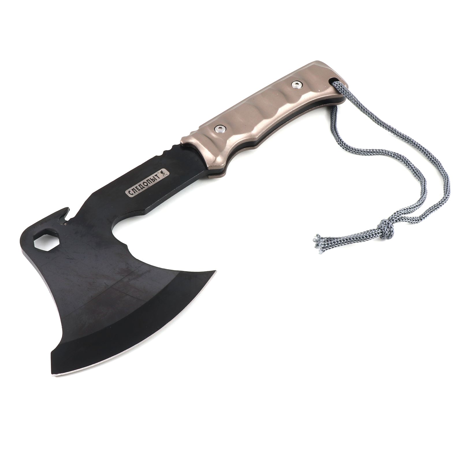 Топор туристический СЛЕДОПЫТ 310х114х71 мм с огнивом и свистком, 475 гр в чехле/20/