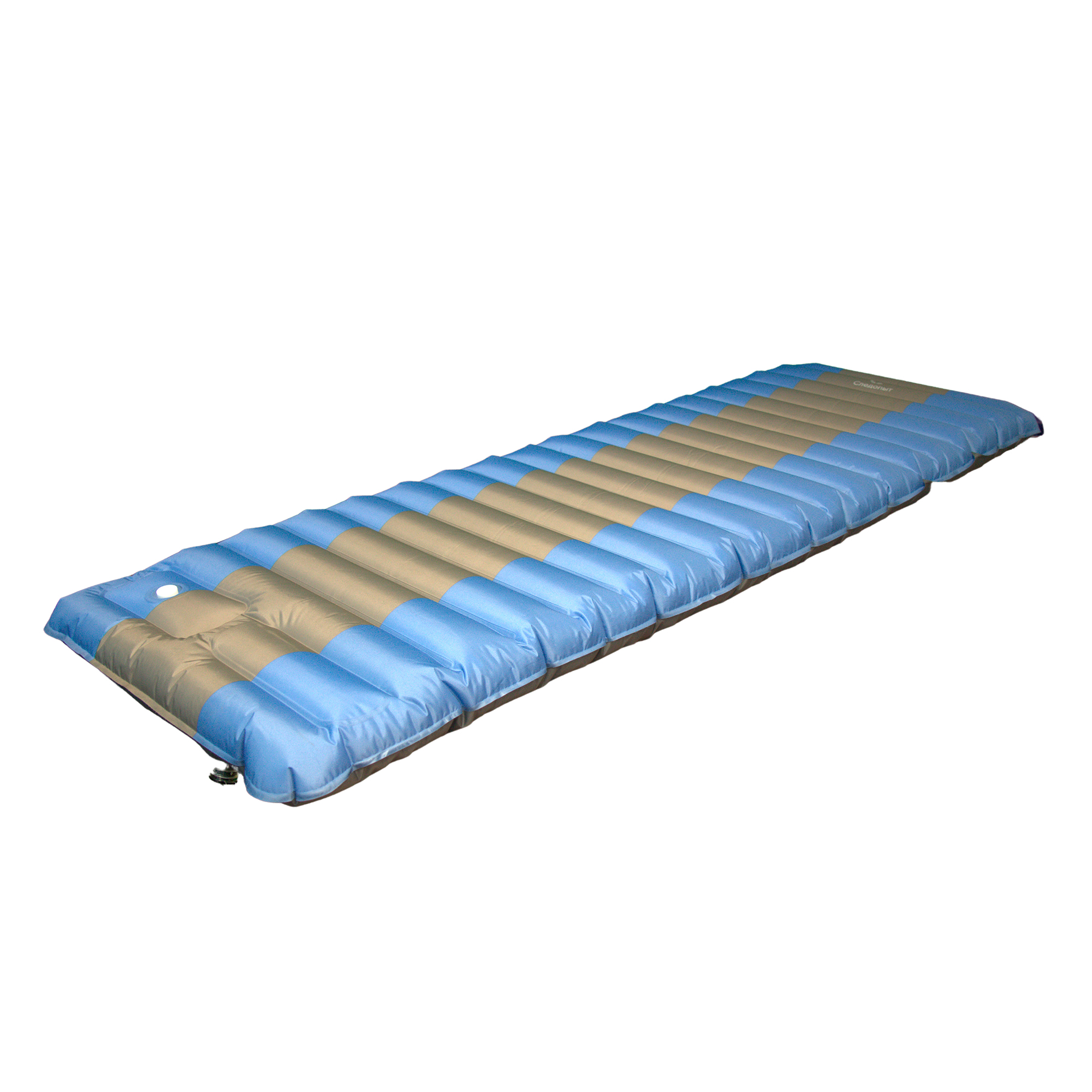Матрас кемпинговый надувной СЛЕДОПЫТ, с насосом, 190x60x12 cм, голубой/серый/12/