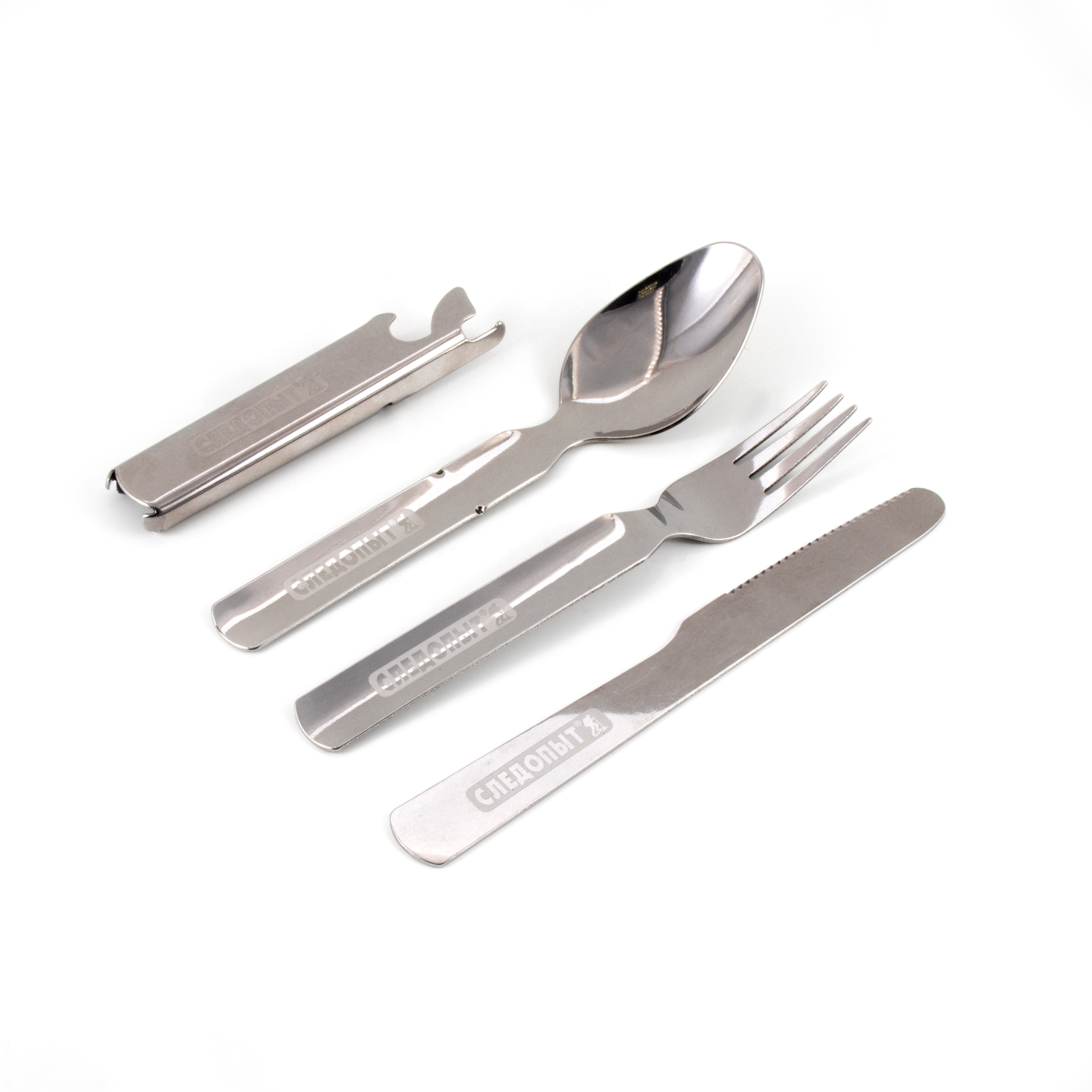 Набор столовых приборов "СЛЕДОПЫТ" в металл. чехле (ложка, вилка, нож, открывашка)/120/