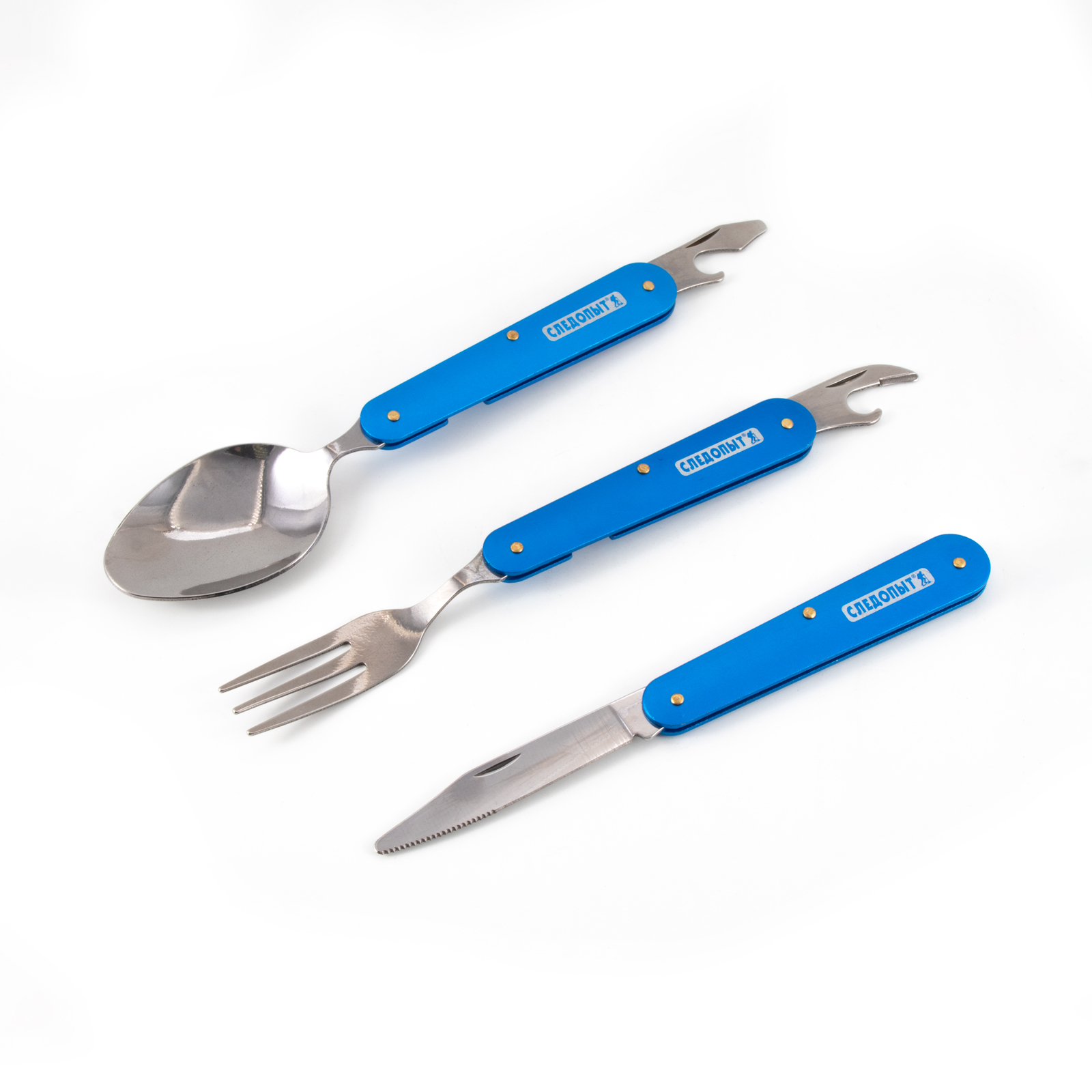 Набор складных столовых приборов "СЛЕДОПЫТ", в чехле (ложка, вилка, нож), на блистере/120/