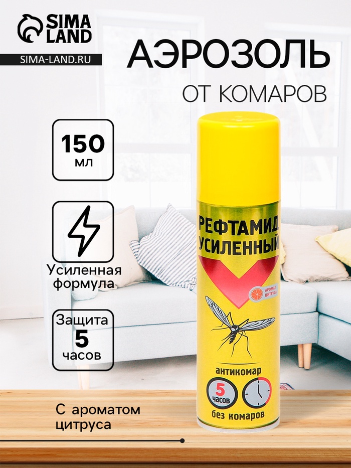 Аэрозоль Репеллент от комаров «Рефтамид», усиленный, ваниль, цитрус, 150 мл