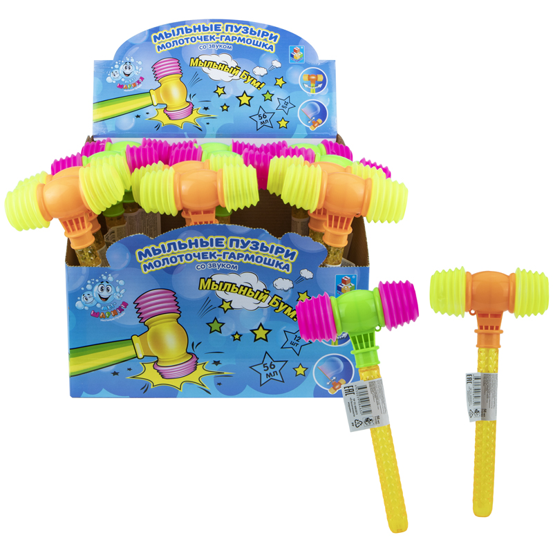 Мыльные пузыри 1toy "Мы-шарики!", 56мл, колба, с игрушкой, молоточек-гармошка со звуком