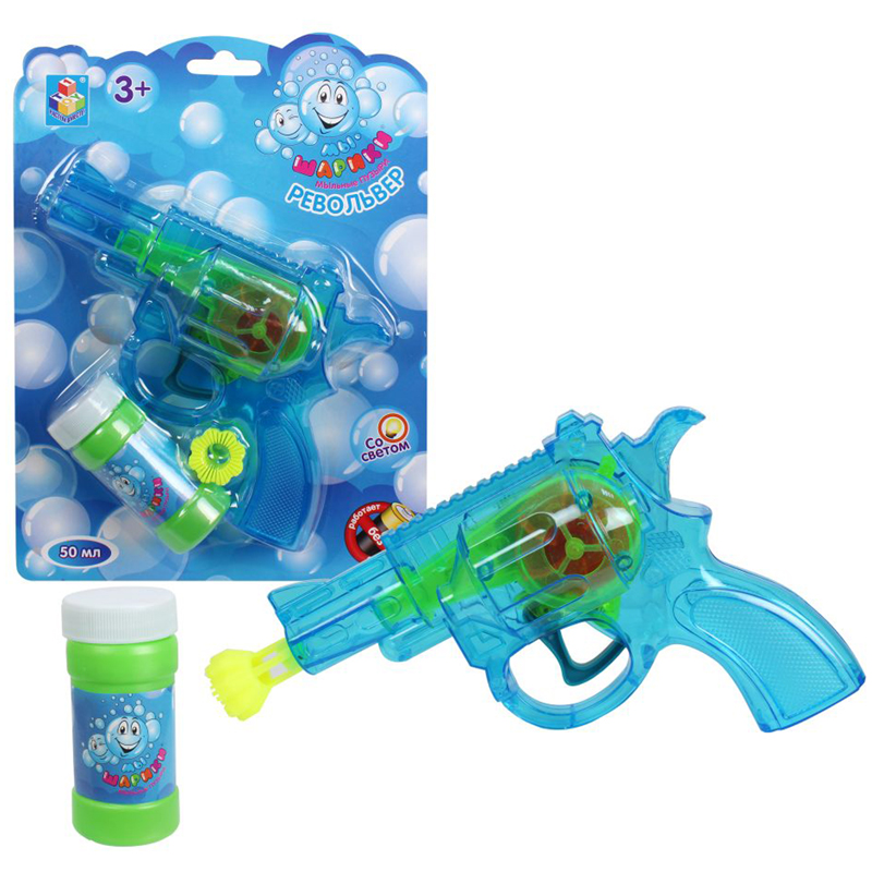 Мыльные пузыри 1toy "Мы-шарики!", 50мл, пистолет механич. с мыл. пузырями, револьвер со светом