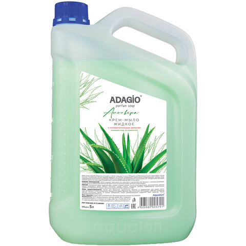 Мыло-крем жидкое 5 л АДАЖИО "Алоэ Вера", ПРЕМИУМ, перламутровое, антибактериальное, ГОСТ, 175791