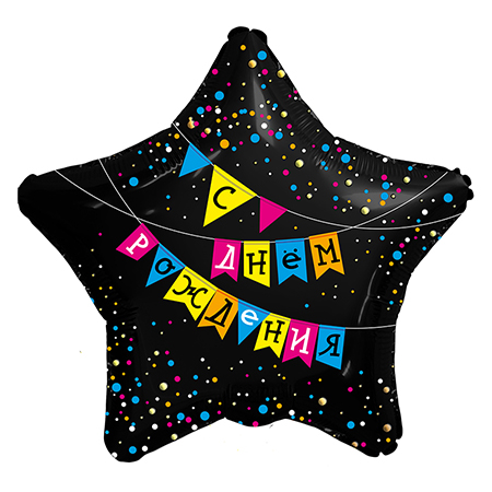 Шар фольгированный " Браво " 19"/48см Звезда С днем рождения! Флажки
