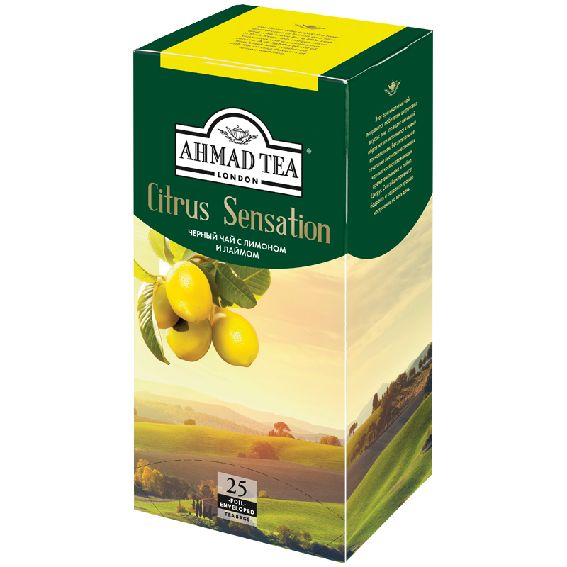 Чай Ahmad Tea "Citrus Sensation", черный, с ароматом лимона и лайма, 25 фольг. пакетиков по 1,8г