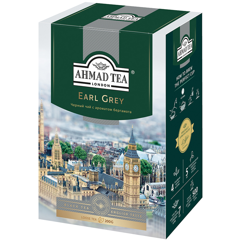 Чай Ahmad Tea "Earl Grey", черный, с бергамотом, листовой, 200г