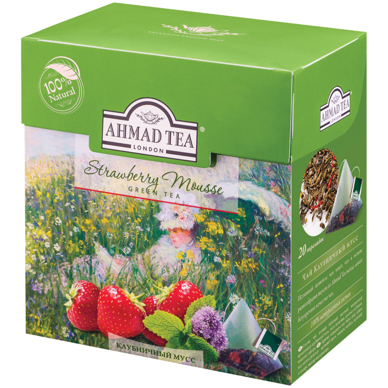 Чай Ahmad Tea "Клубничный мусс", зеленый, 20 пакетиков-пирамидок по 1,8г