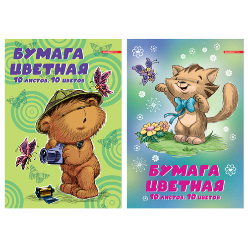Бумага цветная А4 мелованная 10л 10цв " Академия Групп " Мультяшки, в папке
