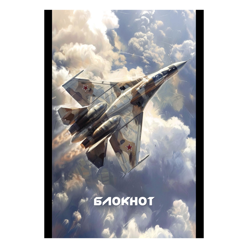 Блокнот МАЛЫЙ ФОРМАТ А6 60л " Альфа-Тренд " Военный самолет, клетка, на скобе, обложка - мелованный картон, твин-лак