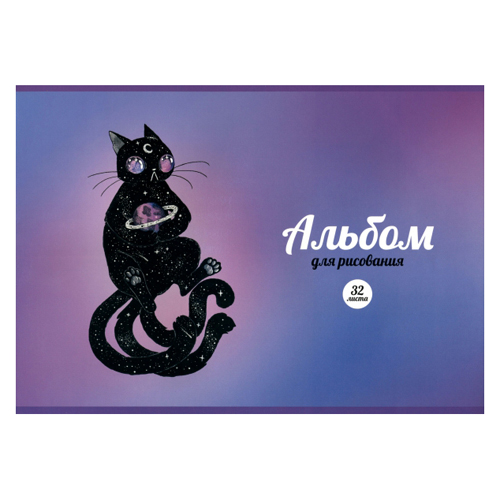 Альбом А4 32л " Альфа-Тренд " Космический кот, на скобе, обложка- мелованный картон, блок- офсет 100г/м2, выборочный твин-лак