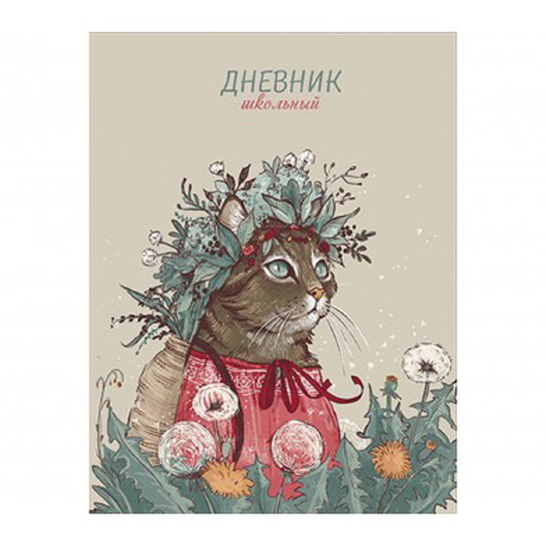 Дневник 1-11 класс 7БЦ " Альфа-Тренд " Кошка в венке, глянцевый ламинированный картон, 48л
