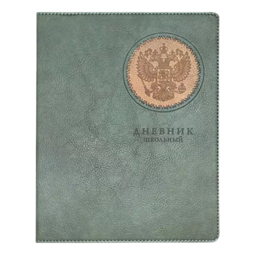 Дневник 1-11 класс искусственная кожа " Альфа-Тренд " Герб хаки, блинтовое тиснение, сочетание двух материалов, 48л