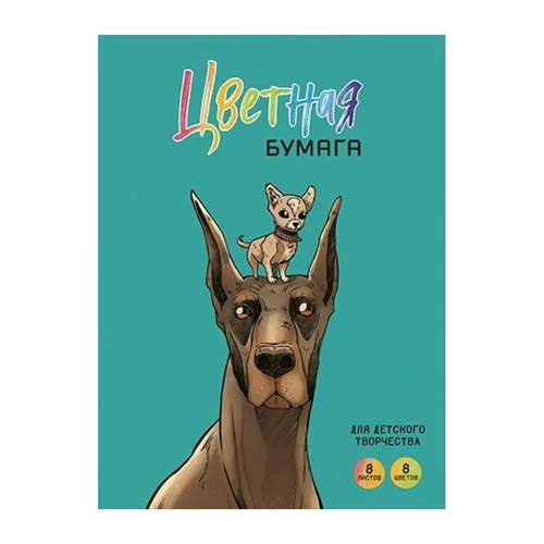 Бумага цветная А4 мелованная 8л 8цв " Альфа-Тренд " Бобик и Барбос, на скобе, 200*275мм
