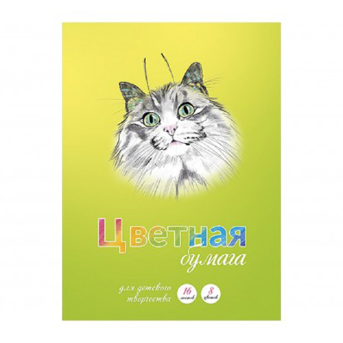 Бумага цветная А4 16л 8цв " Альфа-Тренд " Кошка-бабочка, на скобе, 200*275мм