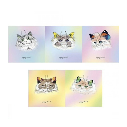 Тетрадь А5 48л " Альфа-Тренд " клетка Кошки-бабочки (ассорти), клетка, офсет, на скобе, обложка - мелованный картон, выборочный УФ-лак, 5 дизайнов