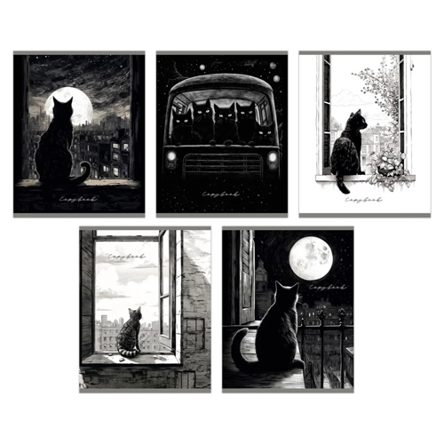 Тетрадь А5 48л " Альфа-Тренд " клетка Не просто коты... (ассорти), клетка, офсет, на скобе, обложка - мелованный картон, УФ-лак, скругленные углы, 5 дизайнов