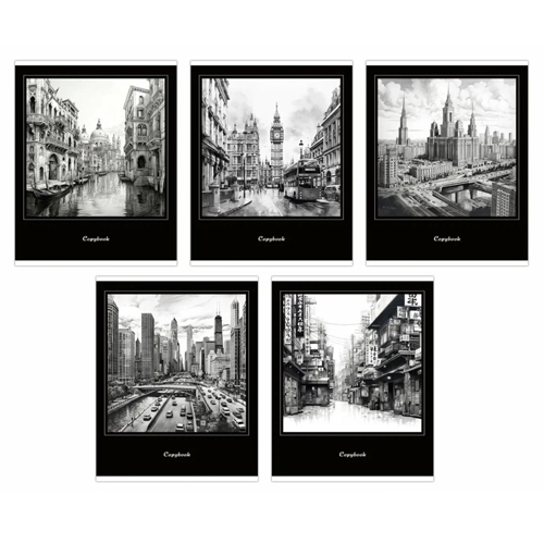 Тетрадь А5 48л " Альфа-Тренд " клетка Города (ассорти), клетка, офсет, на скобе, обложка - мелованный картон, УФ-лак, скругленные углы, 5 дизайнов