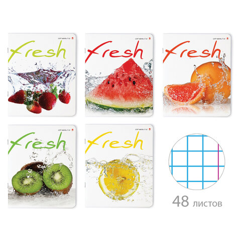 Тетрадь А5 48 л. АЛЬТ скоба, клетка, глянцевый лак, "Фрукты New" (5 видов), 7-48-544