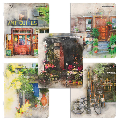 Тетрадь А5 48 л. АЛЬТ скоба, клетка, глянцевый лак, "ЕВРОПЕЙСКИЙ ДВОРИК" (5 видов), 7-48-1057
