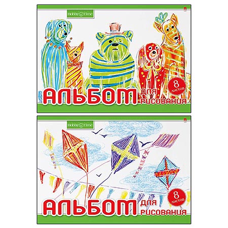 Альбом А4 8л " Hobby Time " ассорти, на скобе, обложка мелованный картон, блок офсет 100г/м2, 2 дизайна