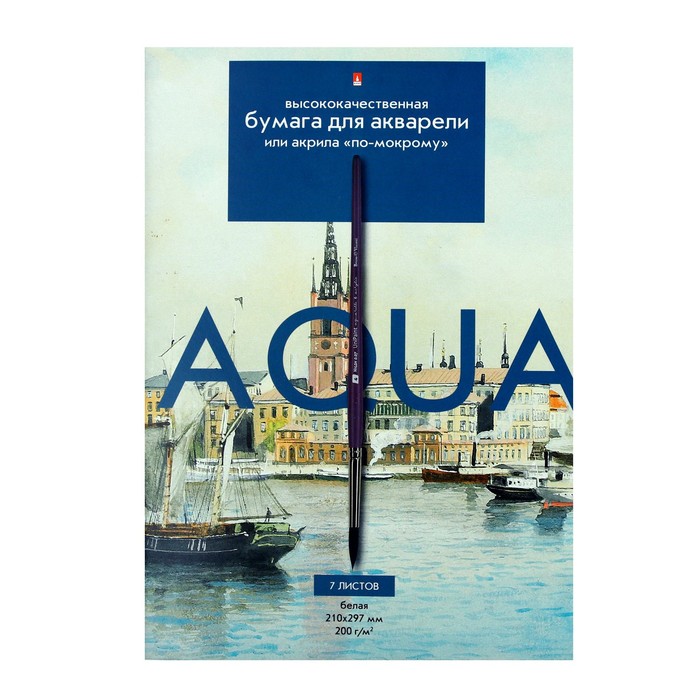 Бумага для акварели А4, 7 листов "Классика", блок 200 г/м2, МИКС