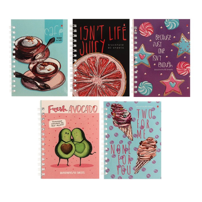 Блокнот А6, 160 листов EXOTIC FRUITS, твёрдая обложка, блок 55г/м2