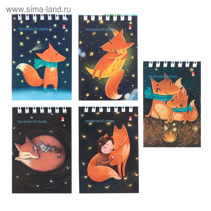 Блокнот А7, 40 листов на гребне "Волшебные лисы", обложка мелованный картон, блок 55г/м2, МИКС