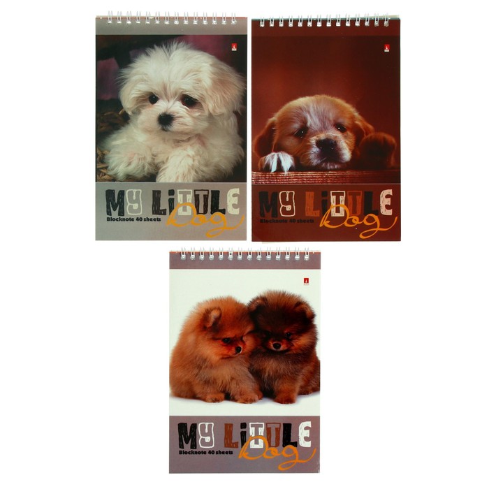 Блокнот А5, 40 листов на гребне "Собаки", обложка ламинированный картон, блок 55 г/м2, МИКС