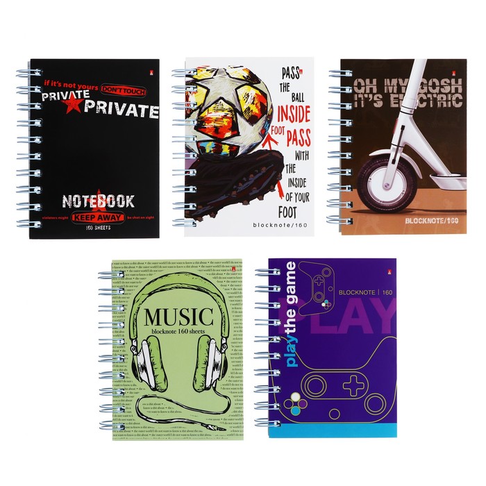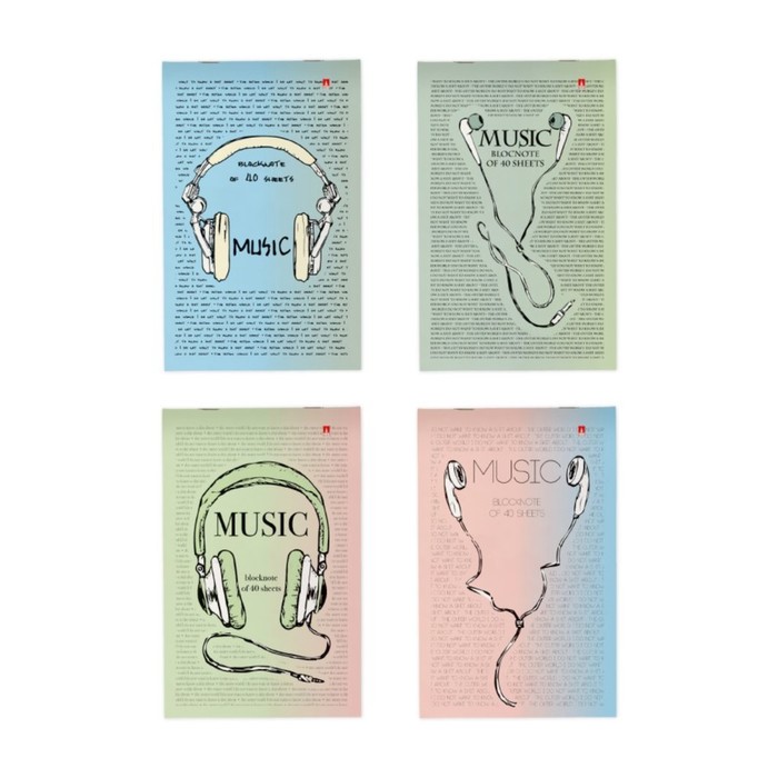 Блокнот А5, 40 листов на скрепке SOUNDMANIA, обложка картон, блок 55г/м2, МИКС