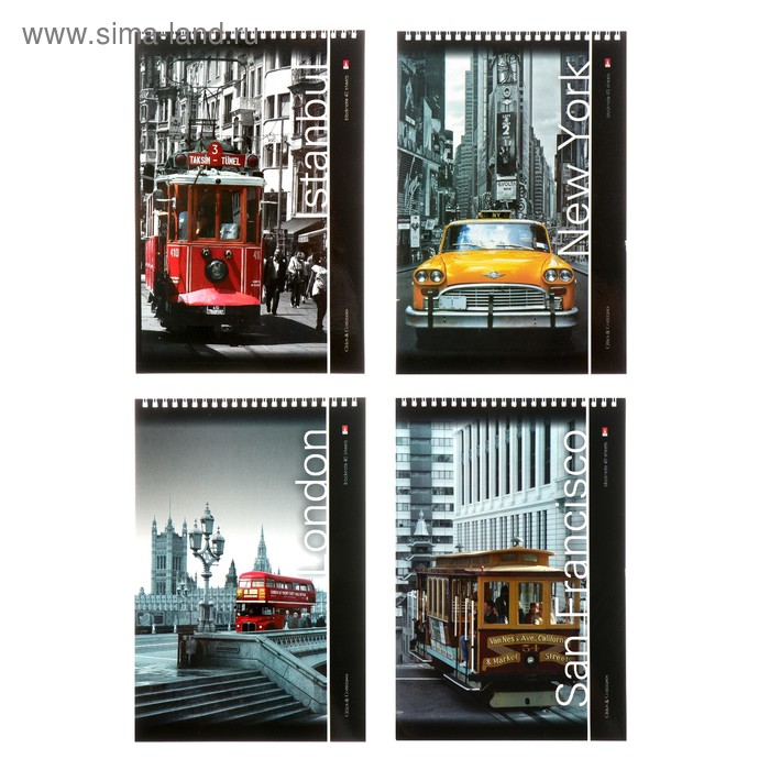 Блокнот А4, 40 листов на гребне "Города", МИКС