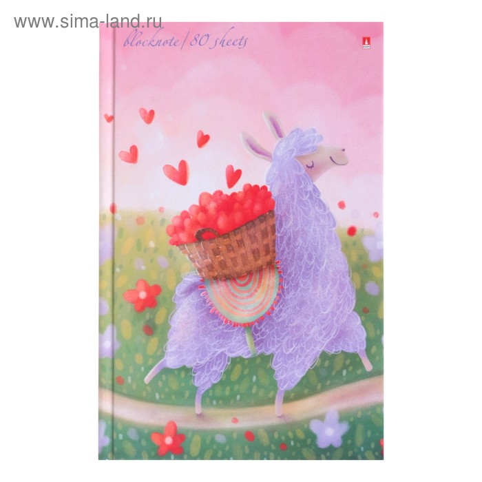 Блокнот А5, 80 листов, твёрдая обложка "Лавандовая лама", глянцевая ламинация