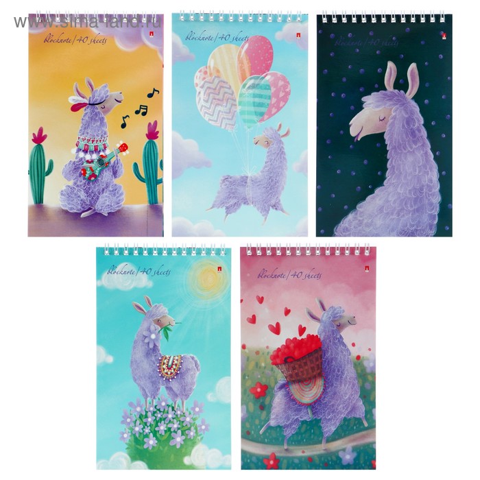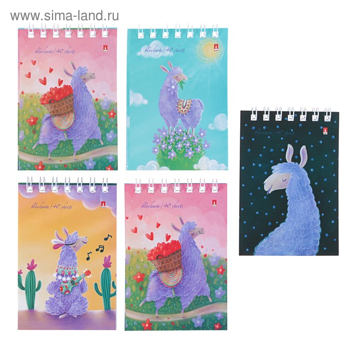 Блокнот А5, 40 листов на гребне "Лавандовые ламы", обложка ламинированный картон, блок 55 г/м2, МИКС