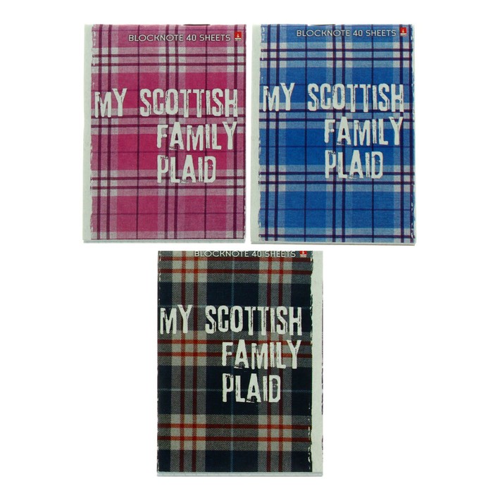 Блокнот А7, 40 листов в клетку на скрепке "Шотландка", МИКС