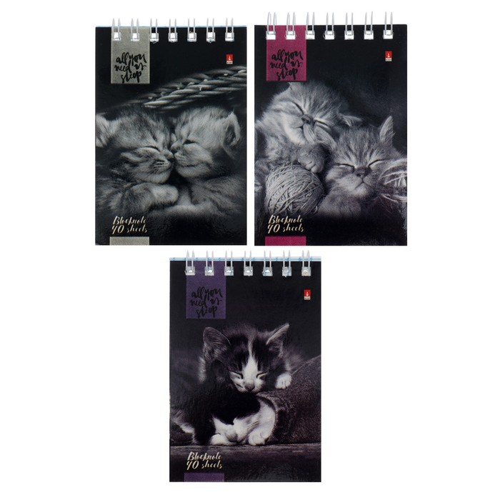 Блокнот А7, 40 листов на гребне "Кошачий Взгляд", обложка ламинированный картон, МИКС