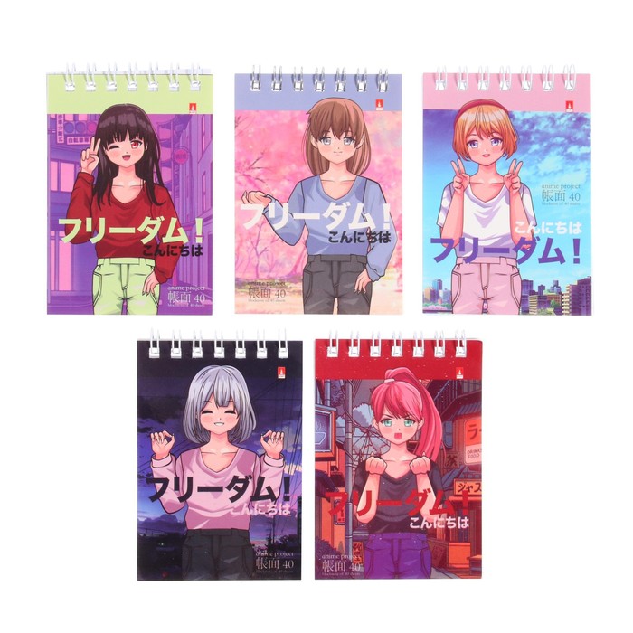 Блокнот А7, 40 листов на гребне Anime Freedom, обложка мелованный картон, МИКС
