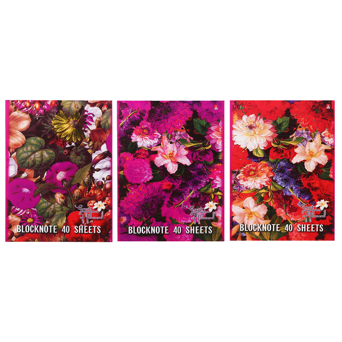 Блокнот А5, 40 листов на скрепке "Цветы", МИКС