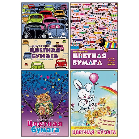 Бумага цветная А4 двухсторонняя 20л 10цв " Альт " Мультики, 4 дизайна, в папке