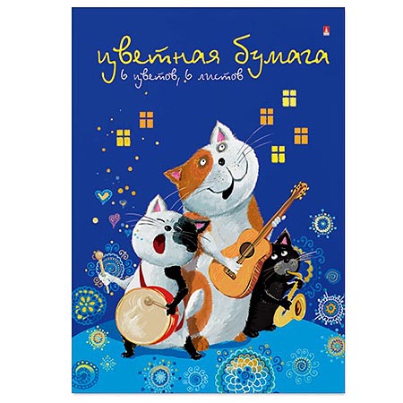Бумага цветная А4 6л 6цв " Альт " Мультики, 4 дизайна, на скобе