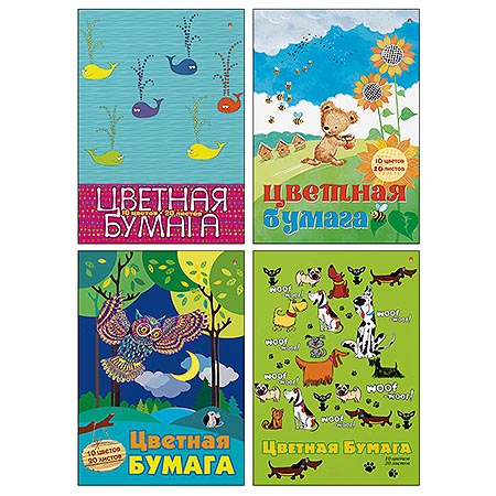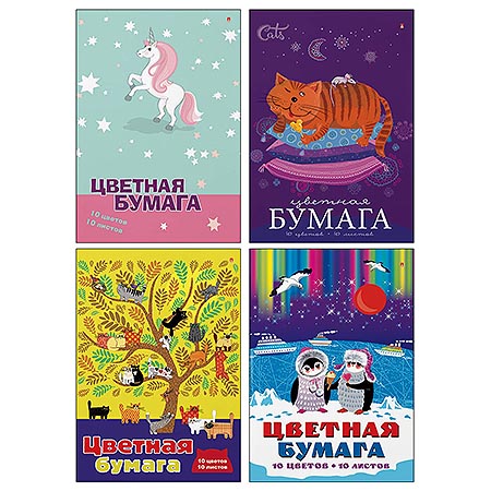 Бумага цветная А4 10л 10цв " Альт " Мультики, 4 дизайна, в папке