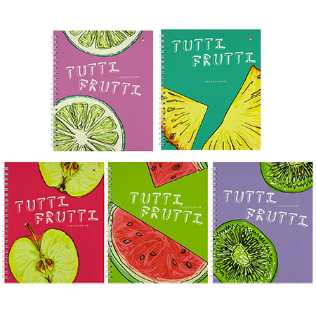 Тетрадь А5 48л " Альт " спираль Fresh&Fruity, клетка, блок- офсет 60г/м2, обложка- глянцевый ламинированный картон, 5 дизайнов