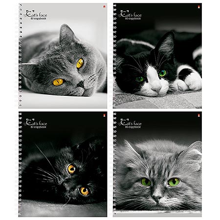 Тетрадь А5 80л " Альт " спираль Кошки, клетка, офсет, обложка- глянцевый ламинированный картон, 4 дизайна