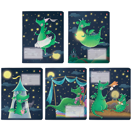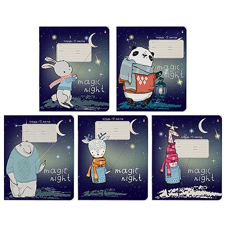 Тетрадь А5 12л " Альт " линия Magic night (ассорти), офсет, на скобе, обложка - мелованный картон, сербряная фольга, скругленные углы, 5 дизайнов